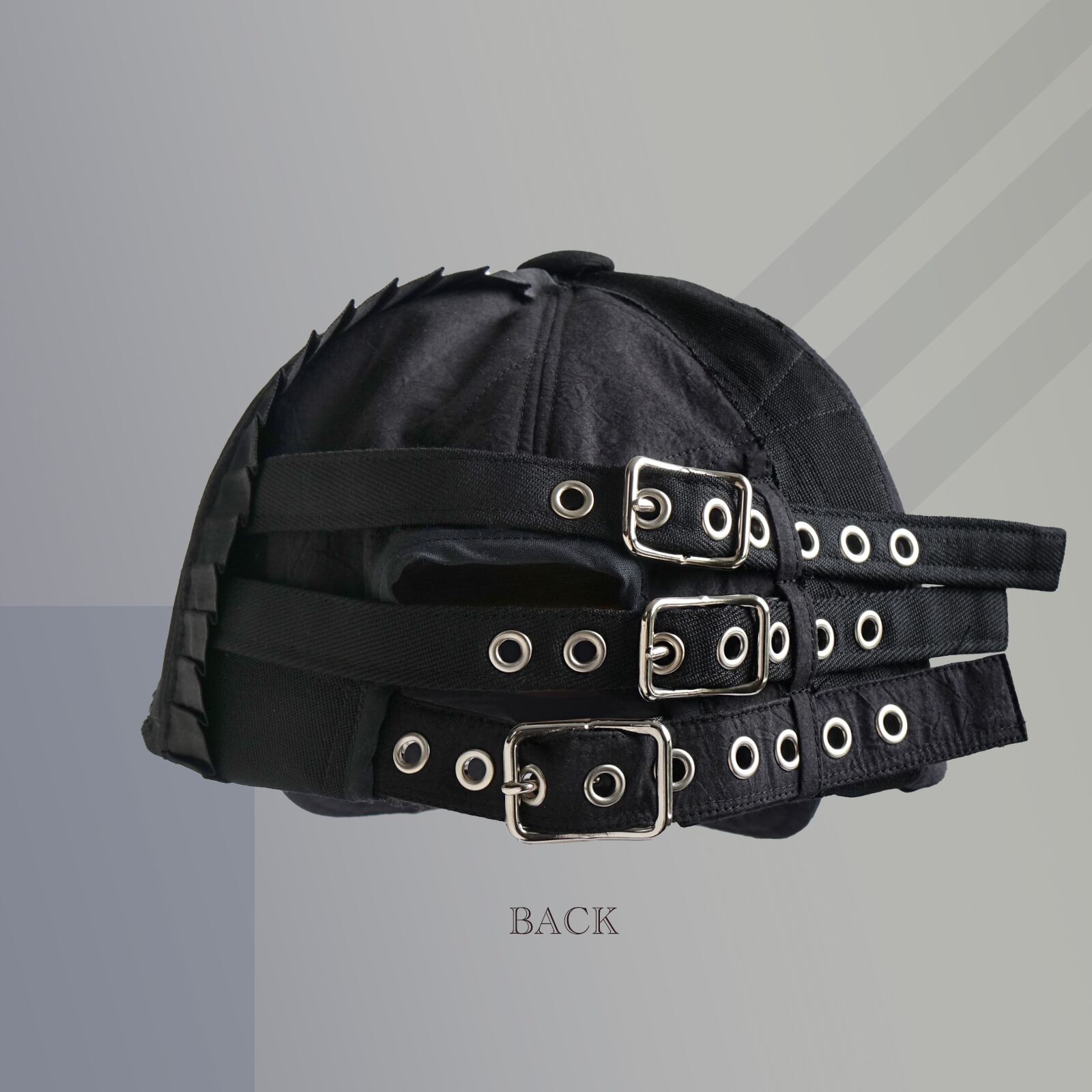 目のいくバックスタイルは、3連のベルトをシルバーのモチーフで装飾