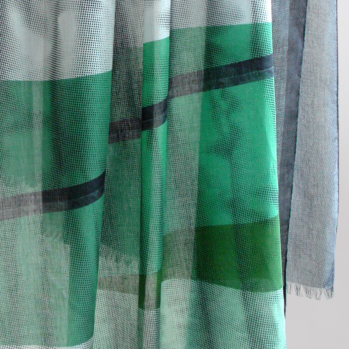 いつもは黒から白のグレースケールでお作りしているKROFUNEのストールですが、