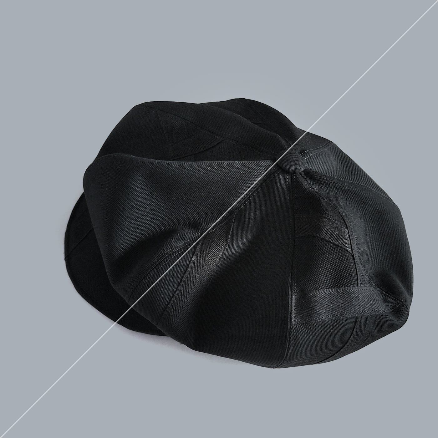 パッチワークされた様々な黒がお楽しみいただける、新作のBIGキャスケット。